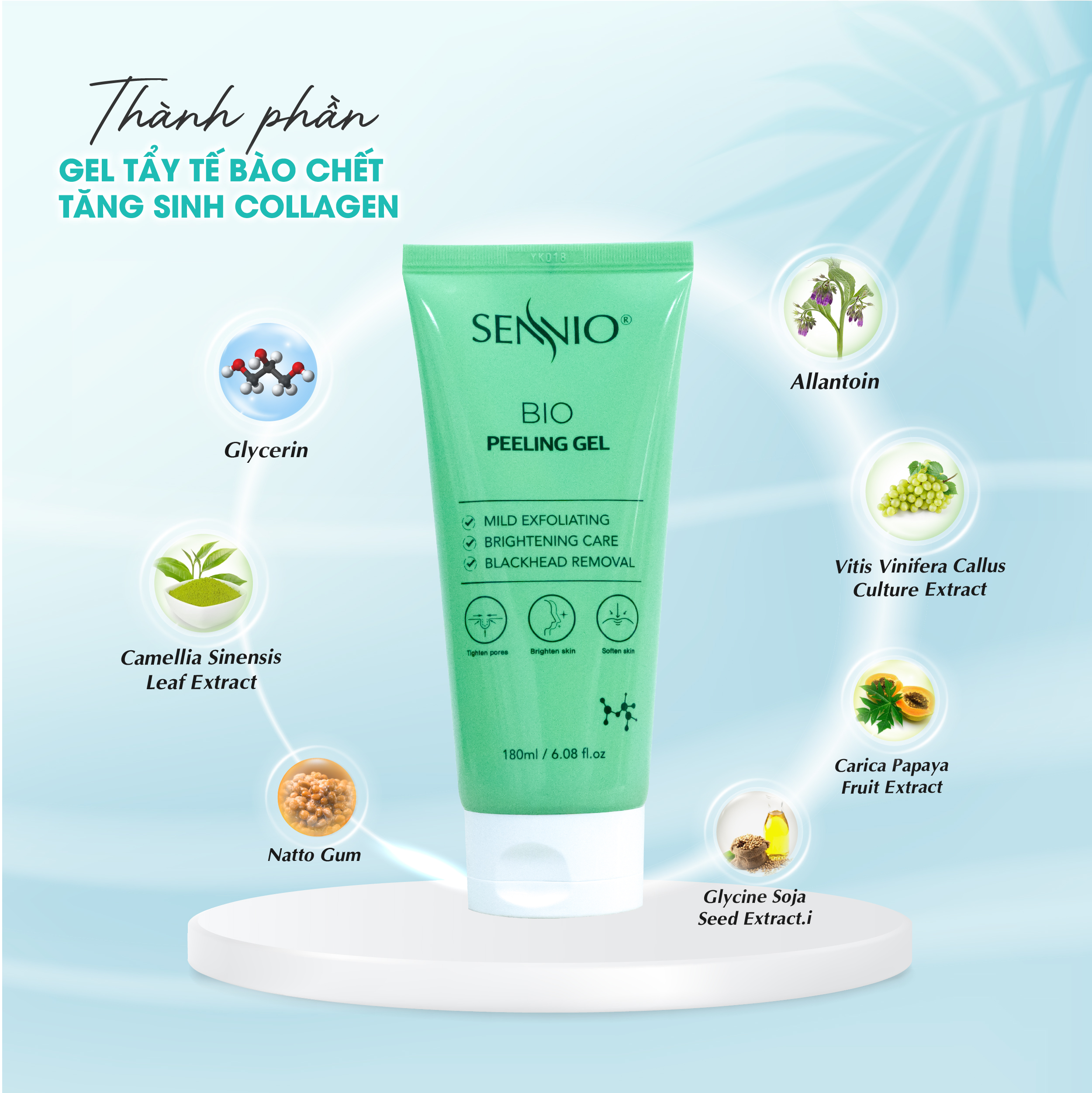 ✨Gel tẩy tế bào chết mặt bổ sung Collagen Sennio Premium Collagen Peeling sạch sâu phù hợp cho da dầu mụn 180ml SNO 806