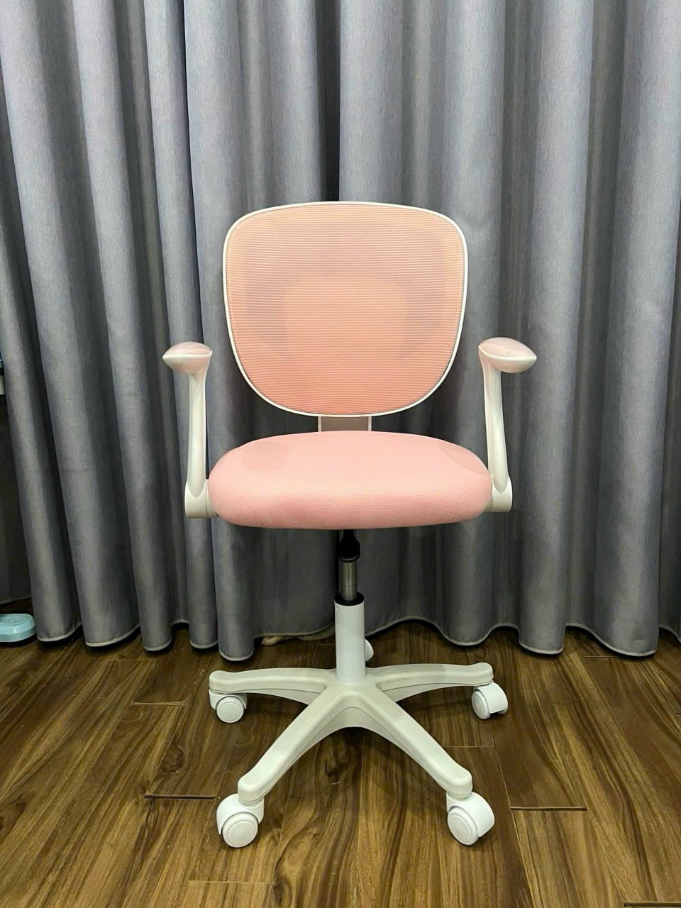 Ghế xoay học sinh cho bé gái màu hồng CE1036A-2M Lưng lưới nệm vải không tay nhỏ gọn tiết kiệm diện tích chân nhựa xoay màu trắng hcm Ghế học sinh nhập khẩu CE1036A-2M có