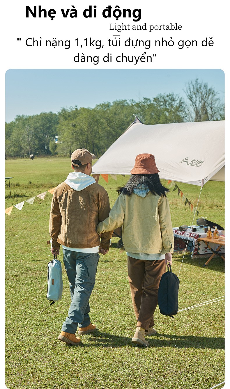 Mua tại TiktokMô Tả Sản Phẩm Thông Tin Sản Phẩm : – Chất liệu : Vải Oxford 900D 2 lớp – Túi đựng: Vải Oxford 210D – Chất liệu khung: Hợp kim Nhôm – Kích thước : 3734*68 (1kg)