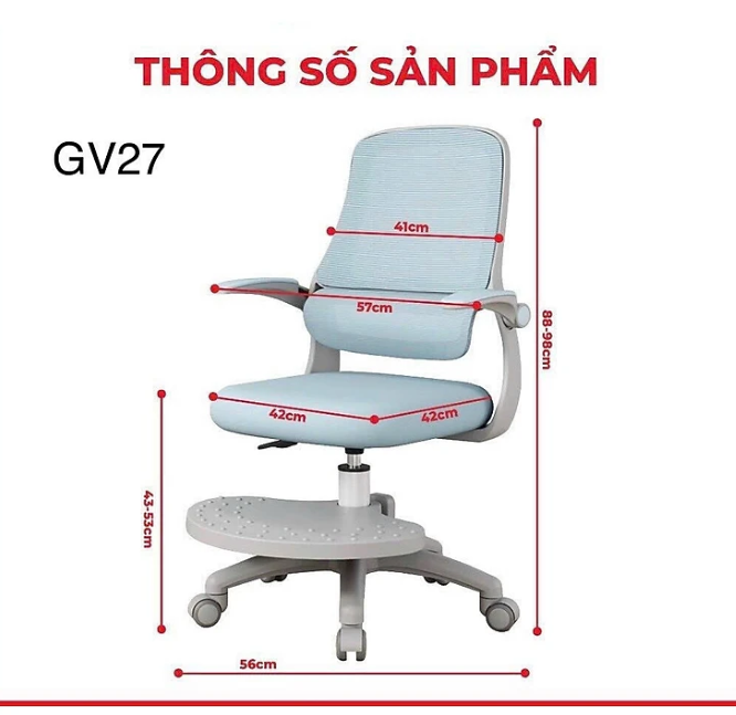 - Chiều cao mặt ghế nâng hạ linh hoạt: 43 - 59cm