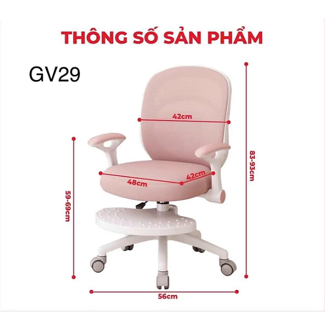 - Chiều cao mặt ghế nâng hạ linh hoạt : 43 - 59 cm