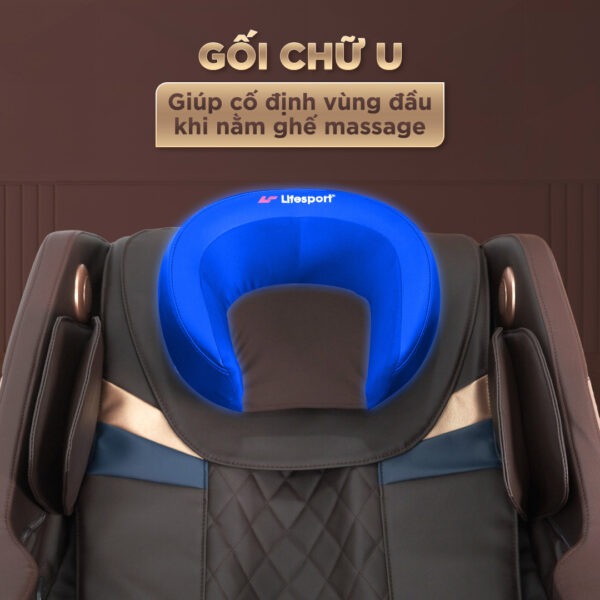 Gối chữ U cũng được trang bị để phần đầu đặt đúng vị trí, không bị xê dịch nhiều khi massage.