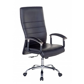- Chất liệu: Nệm lưng cao, bọc simili, tay sắt vuông ốp xi, mâm ngã 1 cần, chân xoay inox 201.