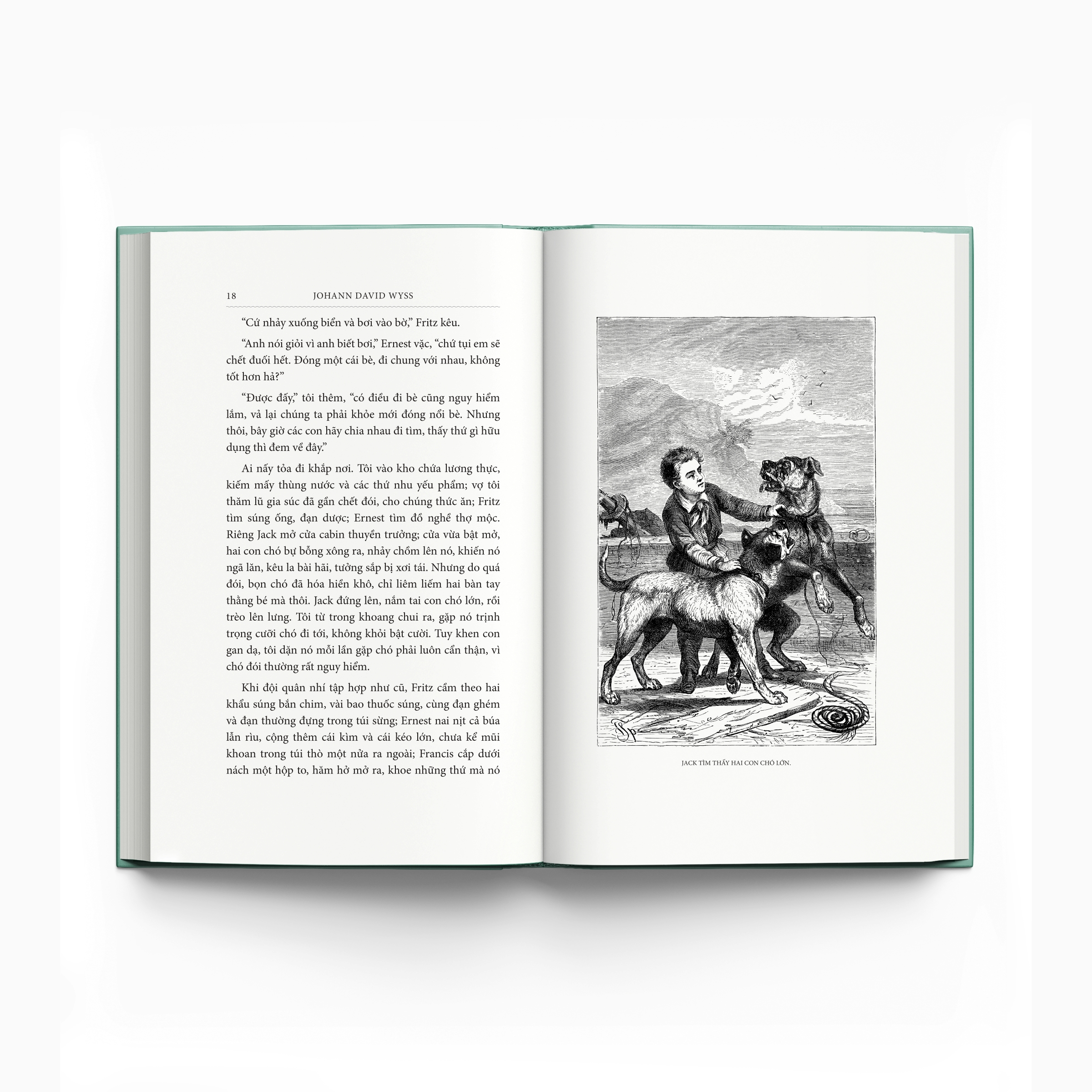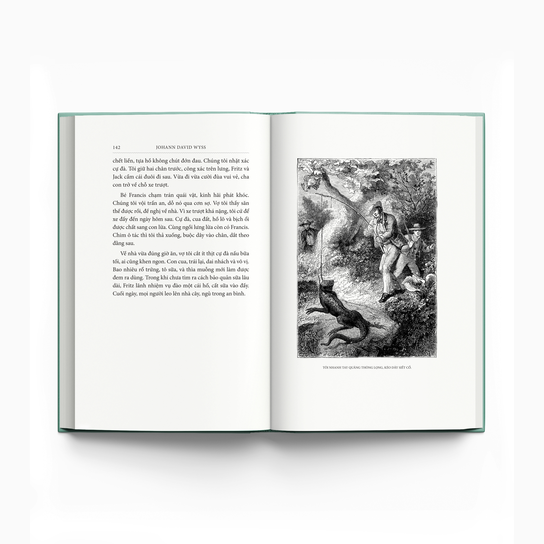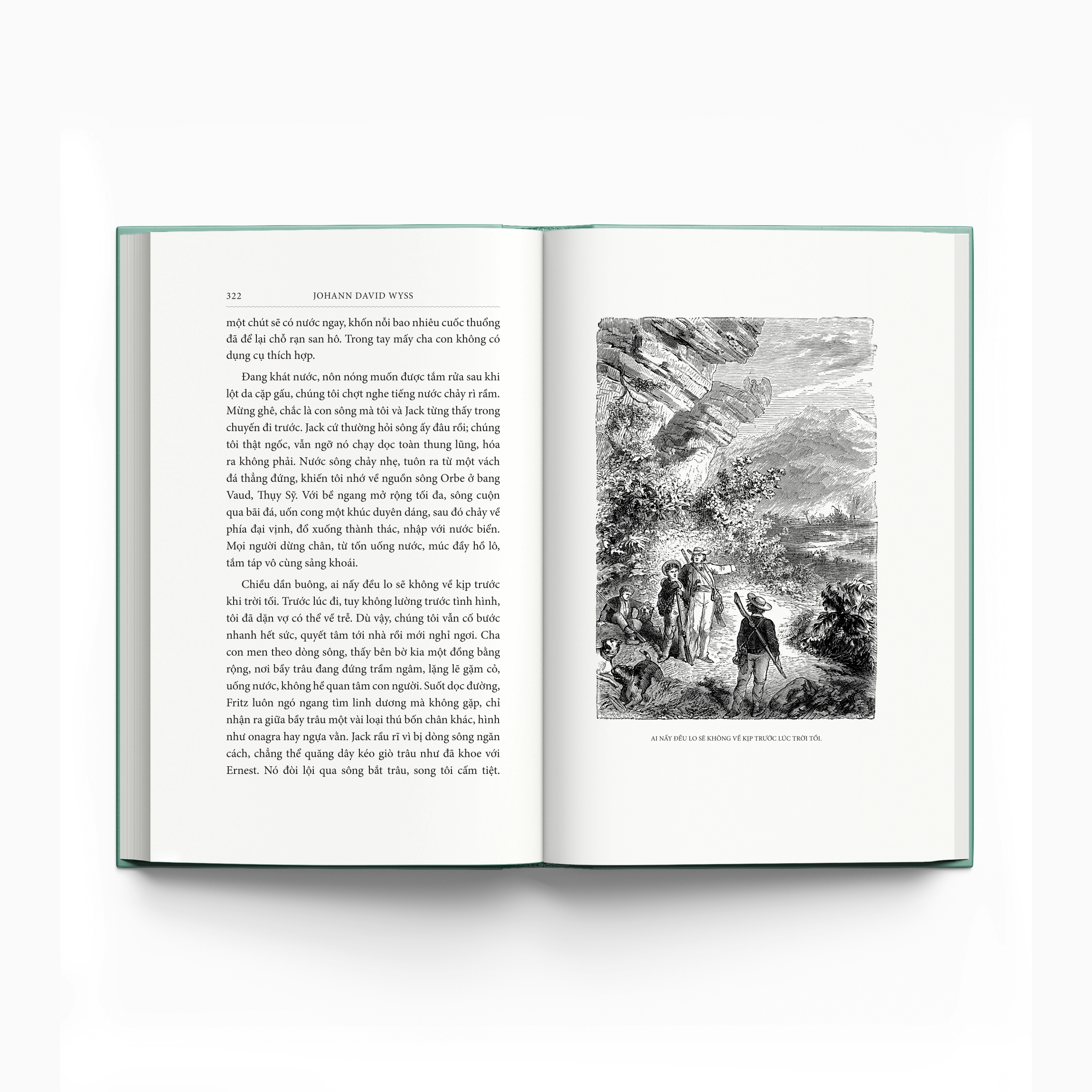 Ấn bản này bổ sung minh họa từ cuốn Le Robinson Suisse ou Histoire d’une famille Suisse naufragée, do Théodore Lefèvre phát hành năm 1877. Sách bìa cứng, bìa bọc bằng vải. Bụng sách được nhũ vàng.