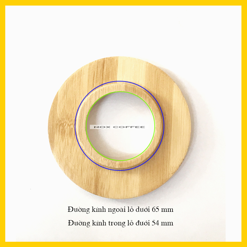 Đế gỗ tre: 111 x 15mm Đường kính trong lỗ trên: 64mm Đường kính trong lỗ dưới: 54mm