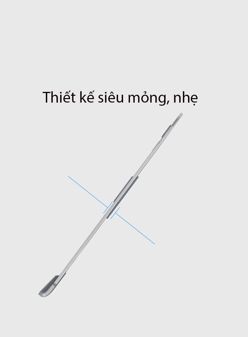 - Chất liệu hợp kim nhôm không gỉ, siêu vững, không gây kích ứng da - Thiết kế siêu mỏng, gọn, nhẹ, dán luôn ở mặt đáy của laptop, khi sử dụng chỉ cần gạt