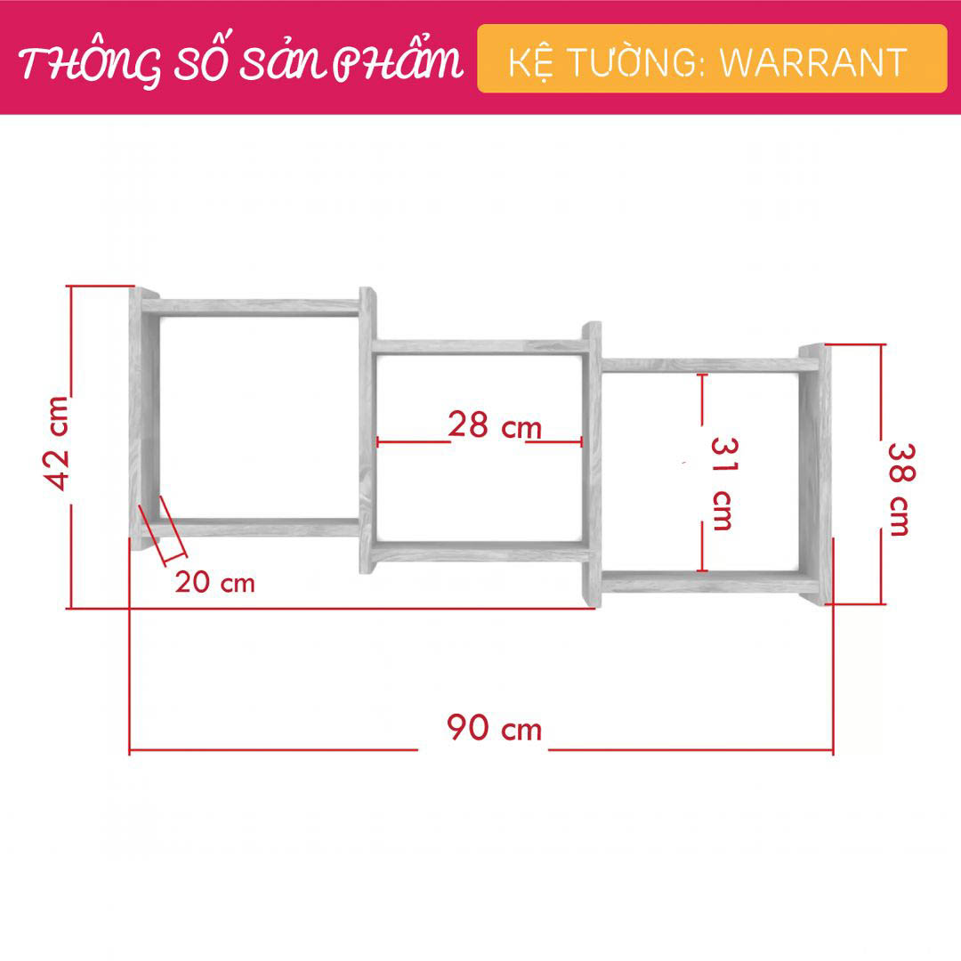Mang đậm phong cách nội thất đơn giản, kệ gỗ treo tường trang trí hiện đại SMLIFE Warrant là một sự bổ sung hoàn hảo cho căn hộ hay văn phòng của bạn. Kệ gỗ Warrant được thiết kế theo phong cách đơn giản, hiện đại giúp bạn thoải mái trang trí sách hay các vật dụng trang trí an toàn. Sử dụng vật liệu ván ép công nghiệp MDF chống ẩm phủ Melamine cao cấp giúp kệ gỗ trang trí SMLIFE có độ bền cao, chống trầy và chống ẩm rất tốt. Bạn có thể tự lắp đặt sản phẩm dễ dàng với các phụ kiện và hướng dẫn đi kèm. ĐẶC ĐIỂM SẢN PHẨM: