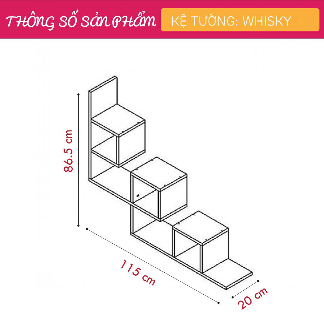 Mua tại TiktokMang đậm phong cách nội thất đơn giản, kệ gỗ treo tường trang trí hiện đại SMLIFE Whisky là một sự bổ sung hoàn hảo cho căn hộ hay văn phòng của bạn. Kệ gỗ Whisky được thiết kế theo phong cách đơn giản, hiện đại giúp bạn thoải mái trang trí sách hay các vật dụng trang trí an toàn. Sử dụng vật liệu ván ép công nghiệp MDF chống ẩm phủ Melamine cao cấp giúp kệ gỗ trang trí SMLIFE có độ bền cao, chống trầy và chống ẩm rất tốt. Bạn có thể tự lắp đặt sản phẩm dễ dàng với các phụ kiện và hướng dẫn đi kèm. ĐẶC ĐIỂM SẢN PHẨM: