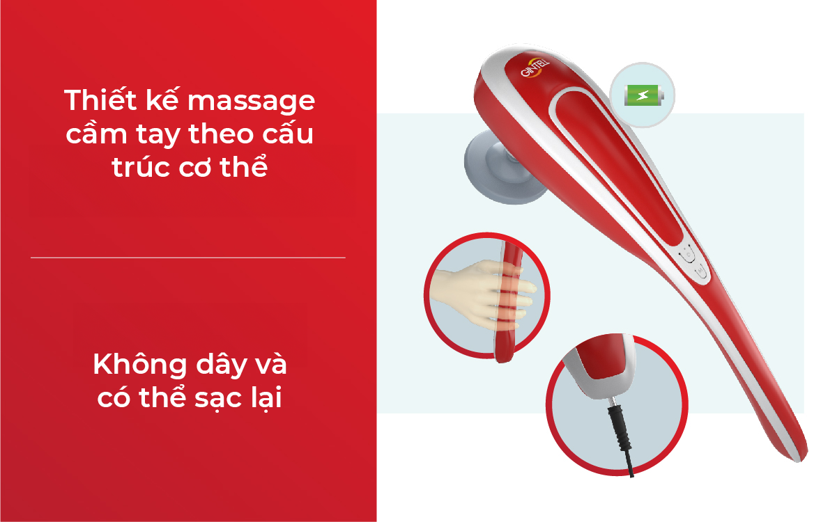 Video Giới Thiệu Sản Phẩm: Thông Tin Chi Tiết - Máy Mát Xa Cầm Tay KINGTECH: - THIẾT KẾ CÔNG THÁI HỌC: KINGTECH có độ cong gần 120 độ, vừa vặn để với tới toàn