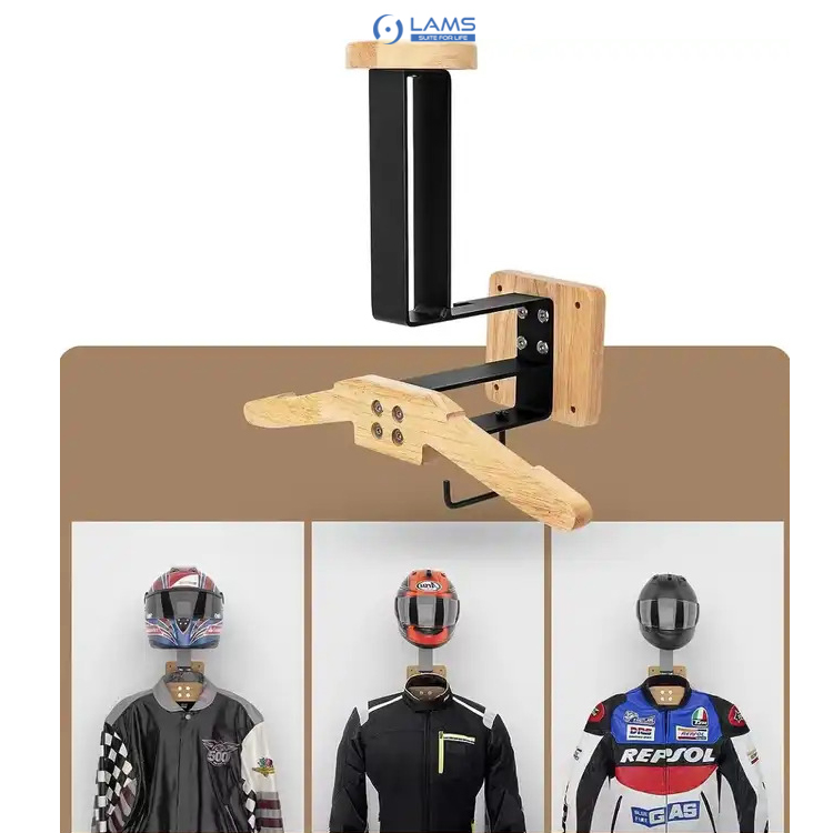 ✨Giá treo nón bảo hiểm, áo khoác, chìa khóa chât liệu gỗ + thép không gỉ GTN24