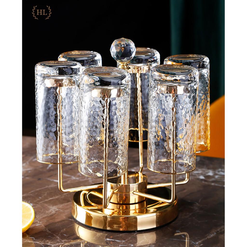 Combo Bộ 6 cốc thủy tinh cao cấp kèm giá úp tròn có khay hứng Combo gồm: 1 bình 6 cốc cốc 1 giá úp hươu 1 khay vương miện