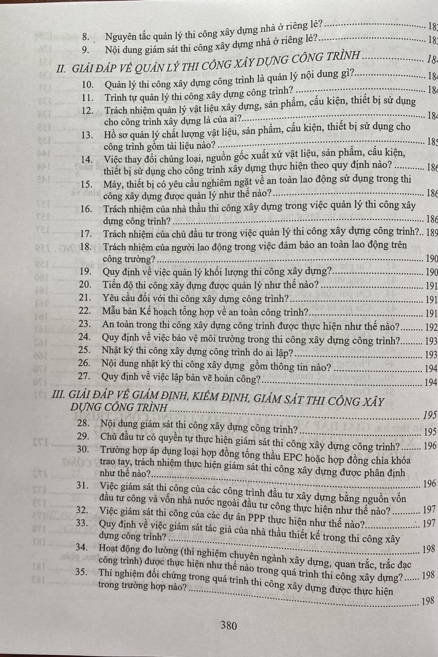 Phần thứ ba. GIẢI ĐÁP VỀ QUẢN LÝ CHẤT LƯỢNG CÔNG TRÌNH XÂY DỰNG, GIÁM SÁT, THI CÔNG, NGHIỆM THU CÔNG TRÌNH XÂY DỰNG