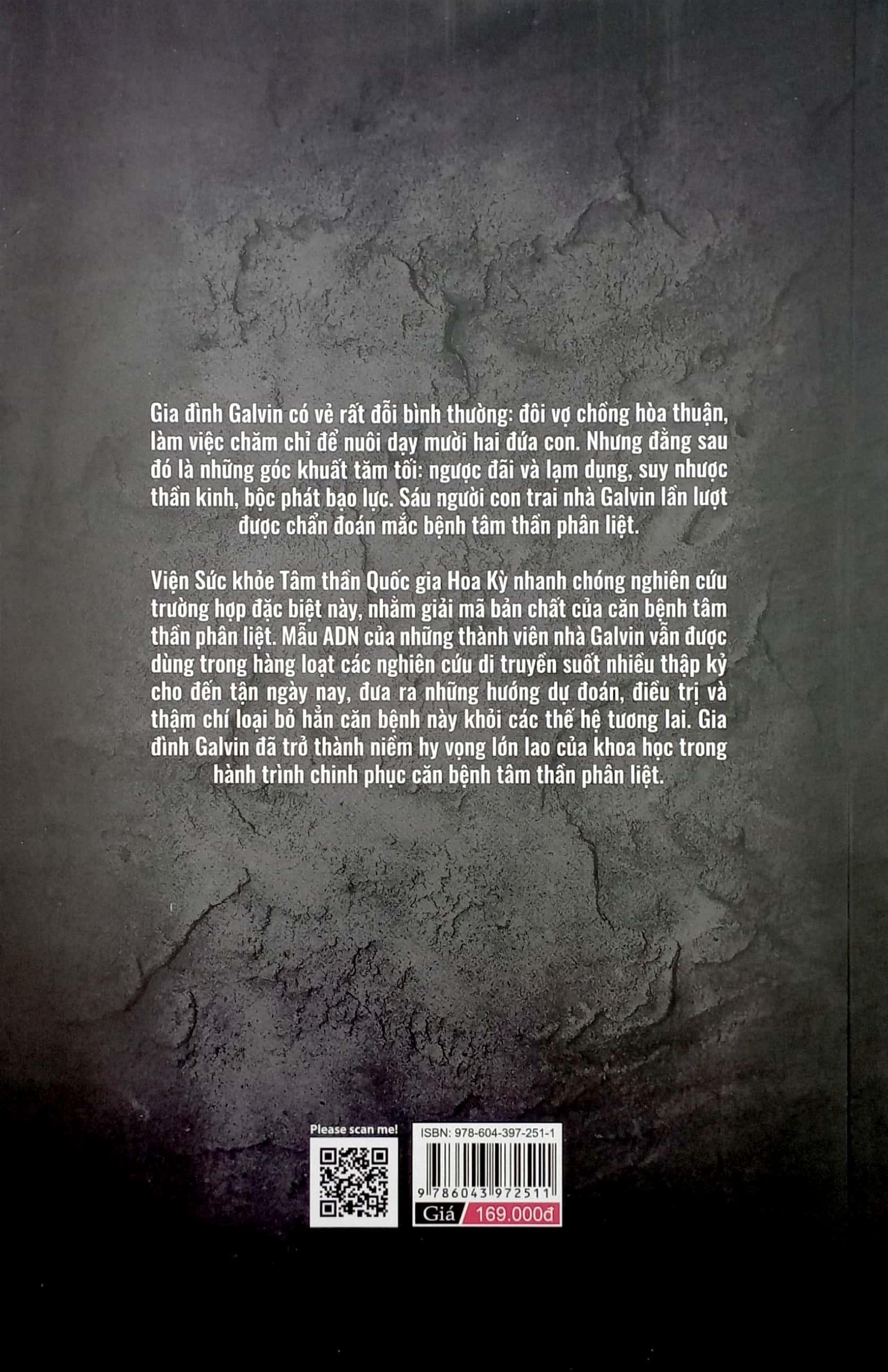 Giải mã tâm thần phân liệt thuật lại câu chuyện có thật về gia đình Galvin. Gia đình Galvin có vẻ rất đỗi bình thường: đôi vợ chồng hòa thuận, làm việc chăm chỉ để nuôi dạy mười hai đứa con. Nhưng đằng sau một gia đình có vẻ như rất đỗi bình thường ấy lại là những góc khuất vô cùng tăm tối: ngược đãi và lạm dụng, suy nhược thần kinh, bộc phát bạo lực. Sáu người con trai của gia đình Galvin lần lượt được chẩn đoán mắc hội chứng tâm thần phân liệt.