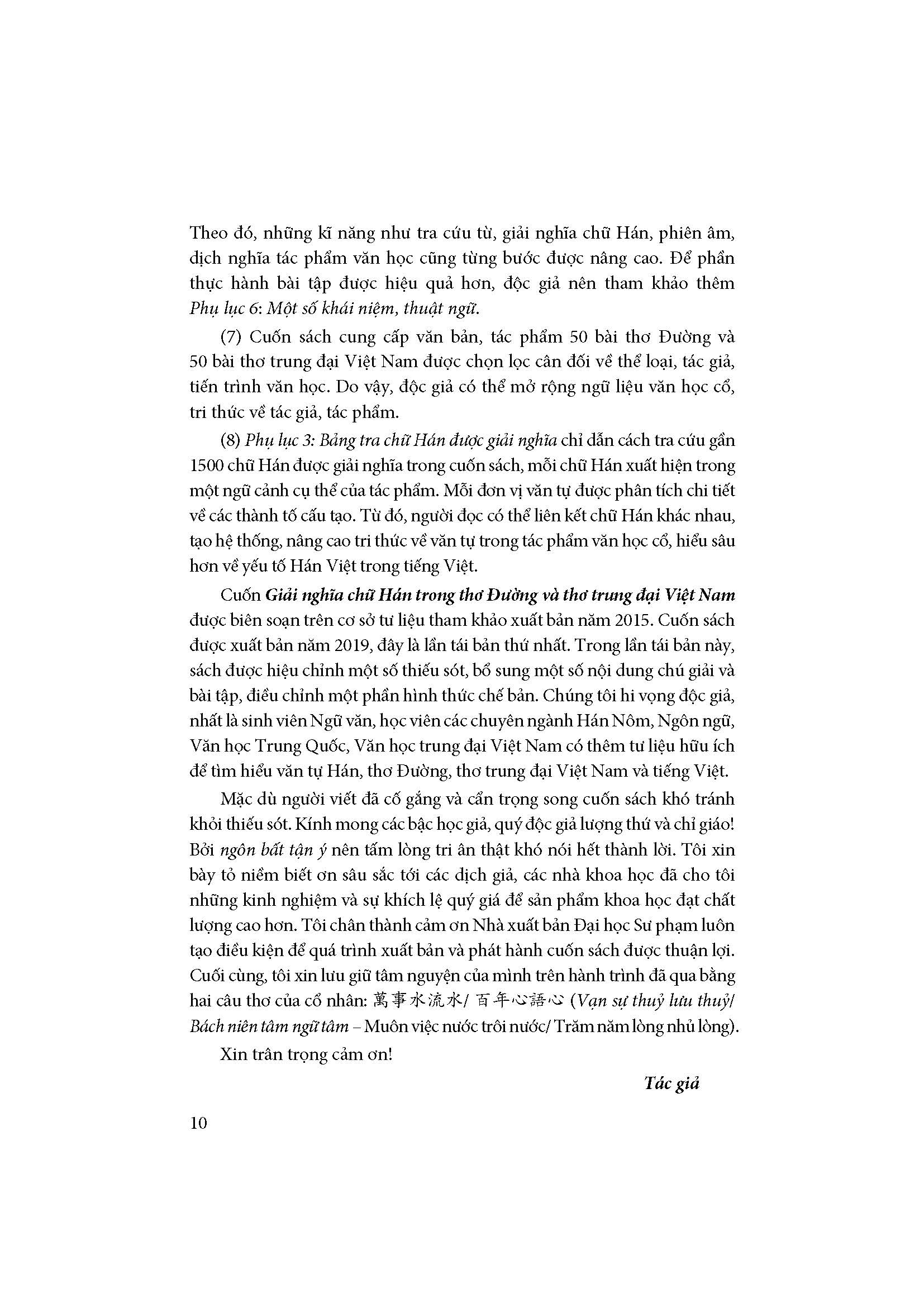 Cuốn Giải nghĩa chữ Hán trong thơ Đường và thơ trung đại Việt Nam được biên soạn hướng tới việc góp phần giúp bạn đọc, người học tìm hiểu văn tự Hán trong văn học