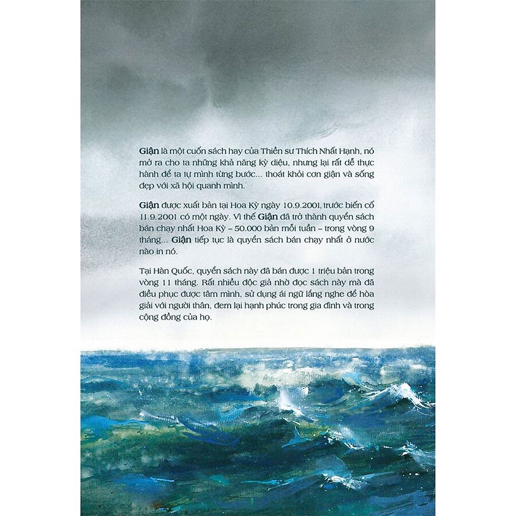 Giận là một cuốn sách hay của Thiền sư Thích Nhất Hạnh, nó mở ra cho ta những khả năng kỳ diệu, nhưng lại rất dễ thực hành để ta tự mình từng bướát khỏi cơn giận và sống đẹp với xã hội quanh mình.
