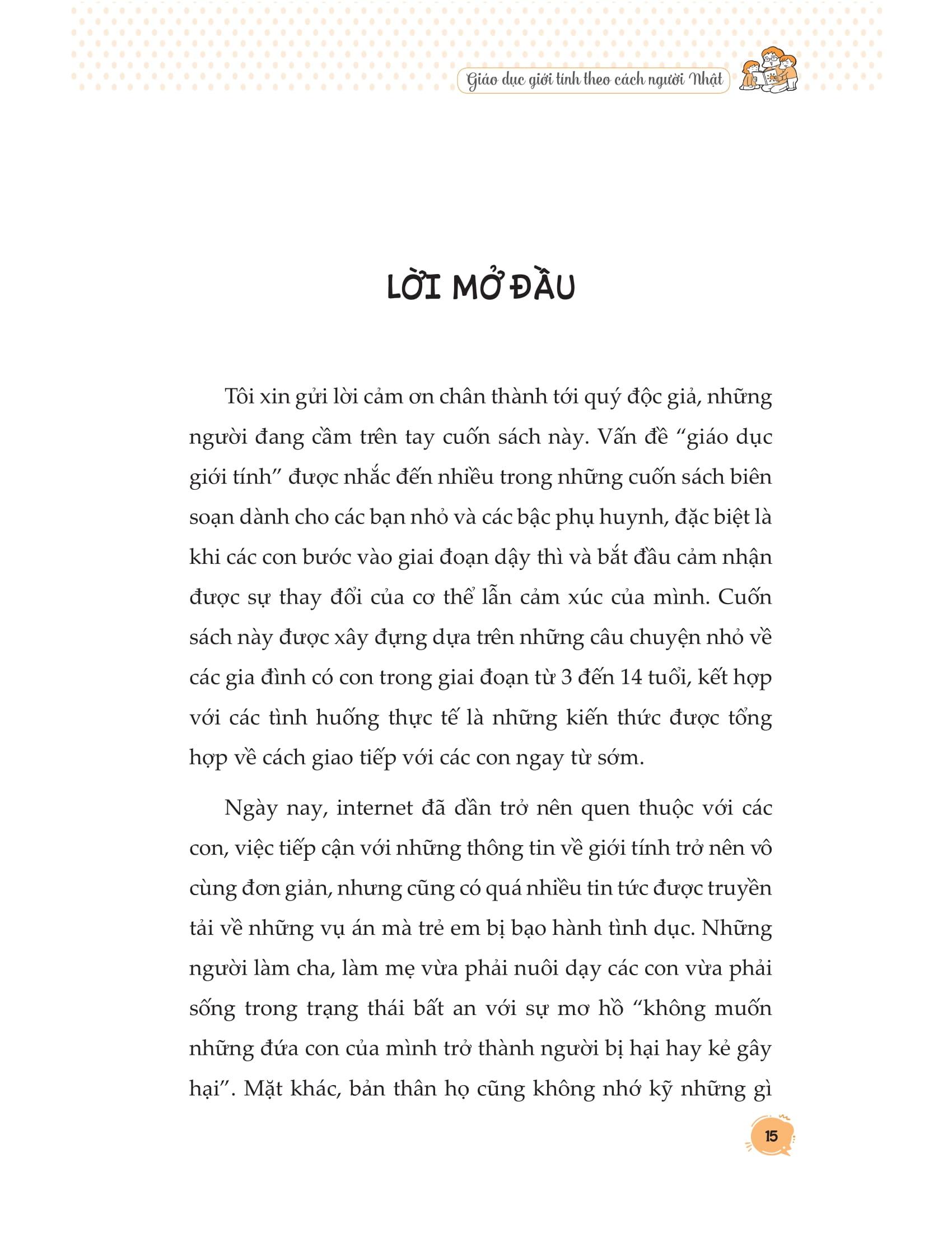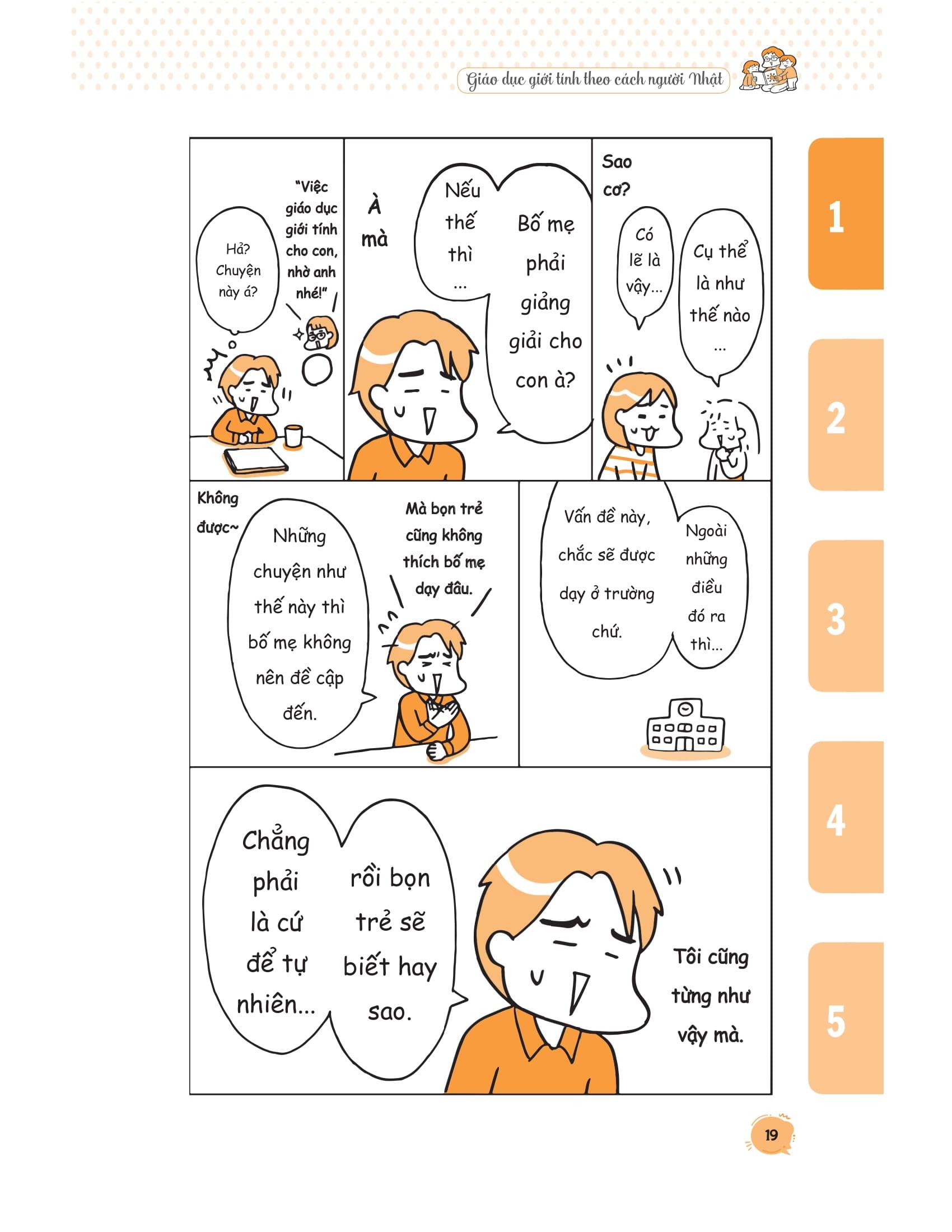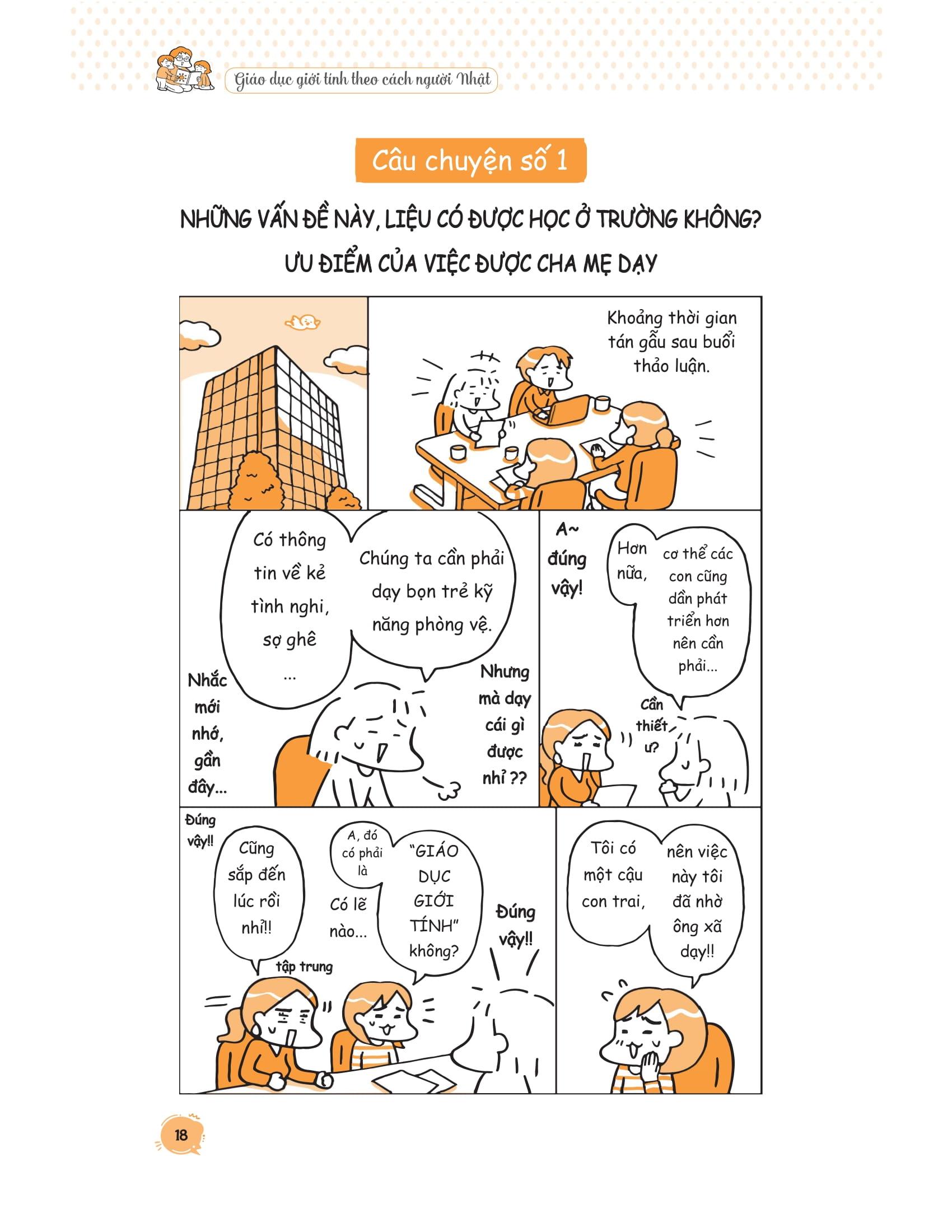“Giáo dục giới tính theo cách người Nhật” là cuốn truyện tranh về giáo dục giới tính hữu ích giúp cha mẹ và các con có thêm kiến thức và hiểu hơn về tầm quan trọng của việc giáo dục giới tính cho con ngay từ sớm. Cuốn sách là những câu chuyện thú vị và sinh động mà nhiều phụ huynh và các bạn nhỏ gặp phải trong cuộc sống hàng ngày, trong mỗi gia đình. Mỗi câu hỏi và vấn đề được đưa ra đều được nhân vật Bác sĩ Thỏ tư vấn và giải thích giúp các bậc cha mẹ hiểu và nắm bắt được các thông tin để giúp bảo vệ con khỏi các vấn đề liên quan tới xâm hại tình dục hay những thông tin xấu trên mạng.