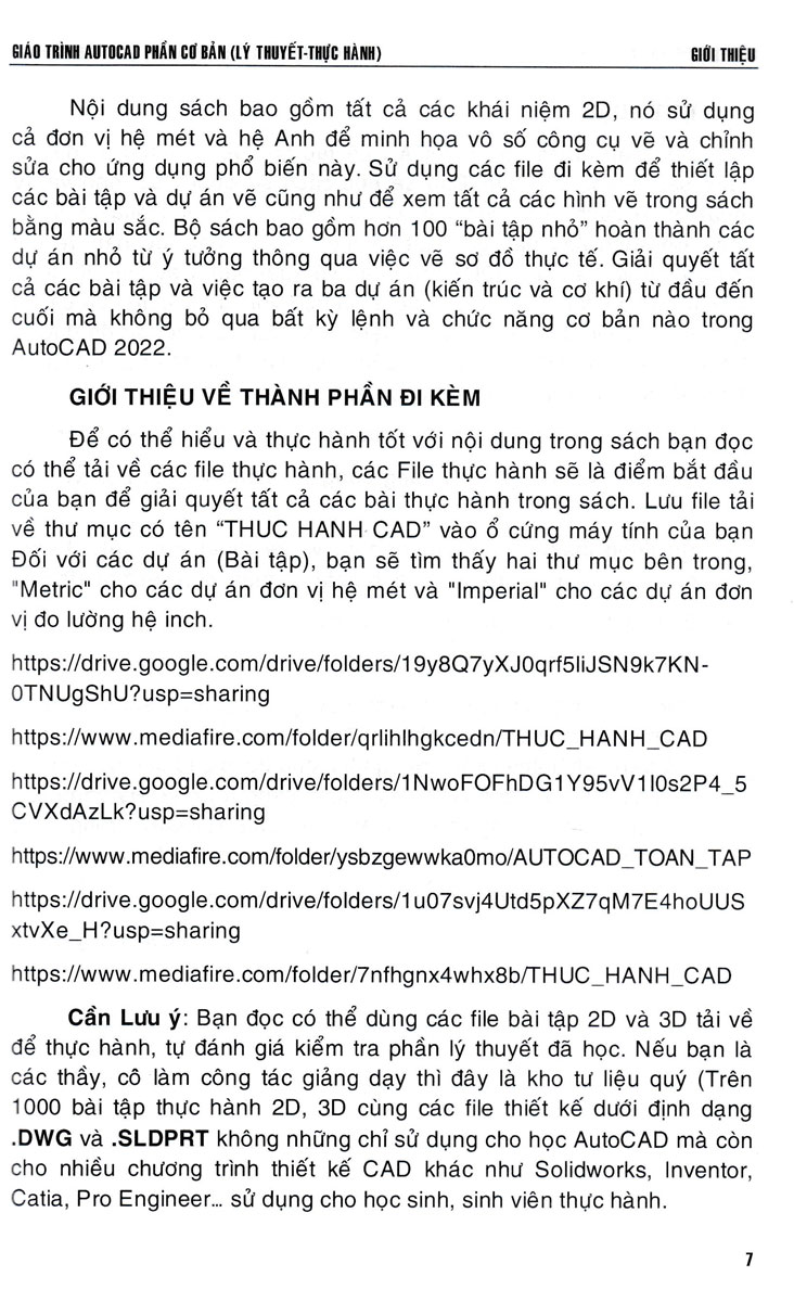 Trong đó 4 cuốn đầu trình bày cả lý thuyết và bài tập, quyển thứ năm trình bày chủ yếu là bài tập thực hành. Các tập từ 1 đến 5 được thực hiện trên phiên bản AutoCAD 2021, tập 6 thực hiện trên phiên bản mới nhất của AutoCAD đó là AutoCAD và AutoCAD 3D 2022.