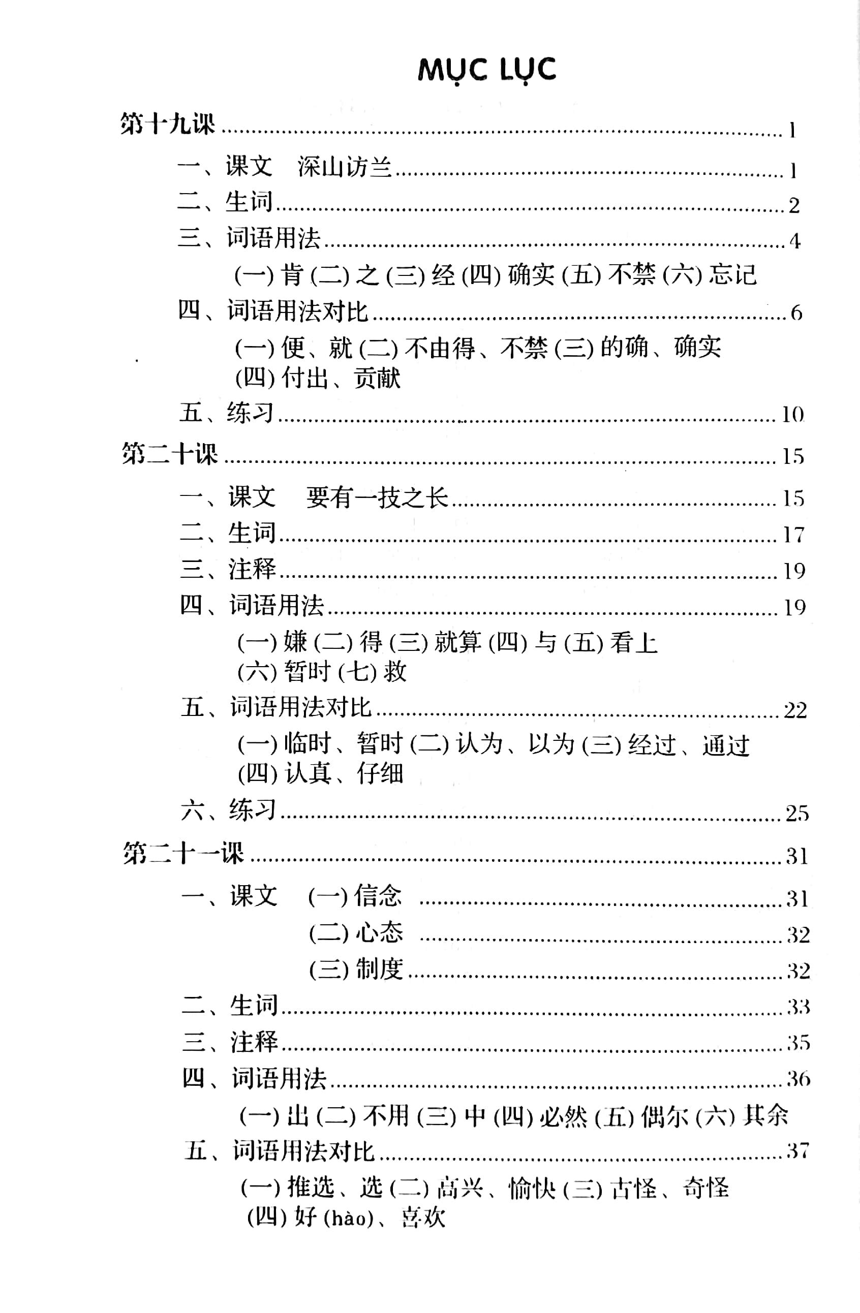 Nội dung trong cuốn Giáo trình phát triển Hán ngữ Đọc Trung cấp 1 - Giáo trình gồm tổng cộng 15 bài học. - Mỗi bài học sẽ gồm có từng bài đọc với những