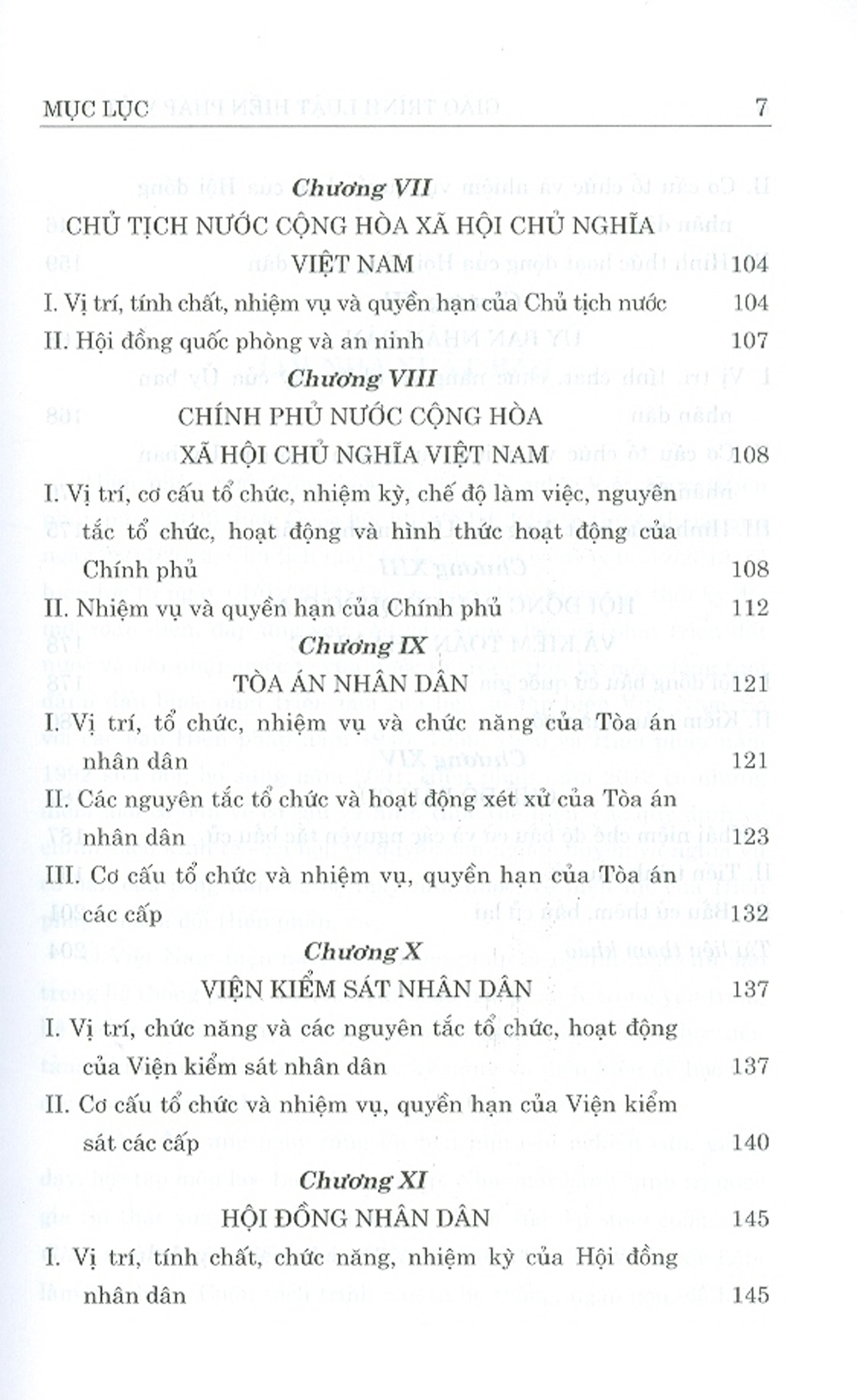Chương 1: Những vấn đề cơ bản về luật hiến pháp. Chương 2: Hiến pháp và lịch sử lập hiến Việt Nam. Chương 3: Chế độ chính trị. Chương 4: Chế độ kinh tế. Chương