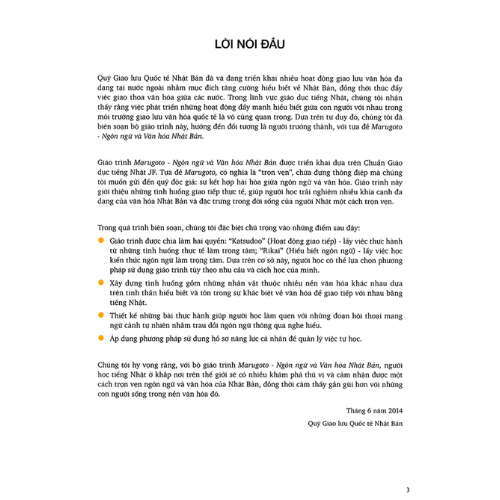 Marugoto Rikai - Ngôn ngữ và văn hóa Nhật Bản - Hiểu biết ngôn ngữ. Marugoto có nghĩa là Trọn vẹn, chứa đựng thông điệp về sự hài hòa giữ ngôn ngữ và văn hóa. Giáo trình giới thiệu những tình huống giao tiếp thực tế, giúp người học trải nghiệm nhiều khía cạnh đa dạng của văn hóa Nhật Bản và đặc trưng trong đời sống của người Nhật một cách trọn vẹn.