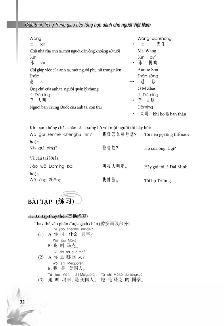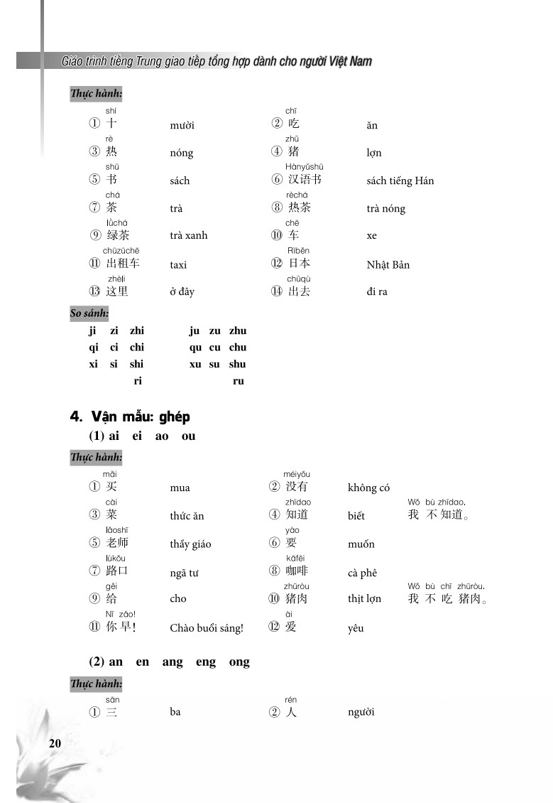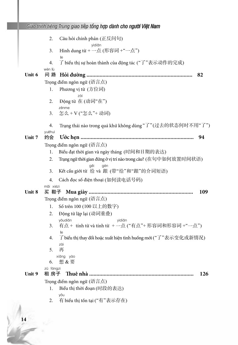 Giáo trình tiếng Trung Giao tiếp tổng hợp dành cho người Việt Nam Cuốn sách Giáo Trình Tiếng Trung Giao Tiếp Tổng Hợp Dành Cho Người Việt Nam có 15 bài, mỗi bài gồm: