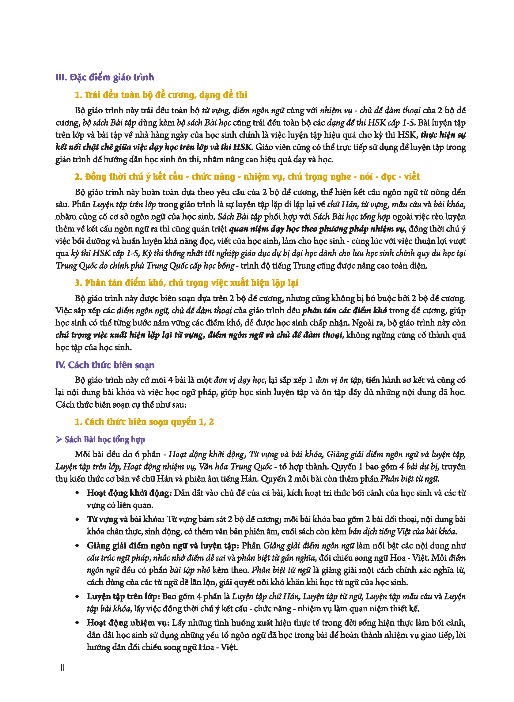 Đặc điểm của bộ giáo trình: Phù hợp với xu hướng dạy học hiện đại, kết hợp giữa việc dạy và học với giao tiếp thực tế trong cuộc sống hằng ngày. Từ loại được