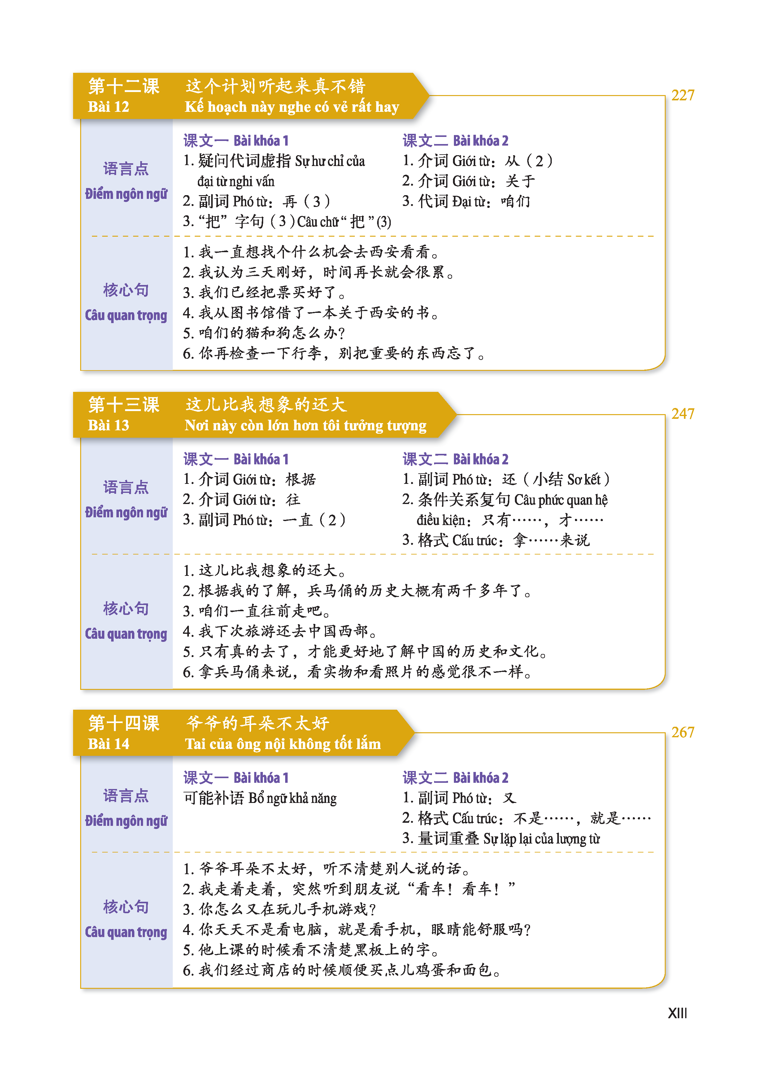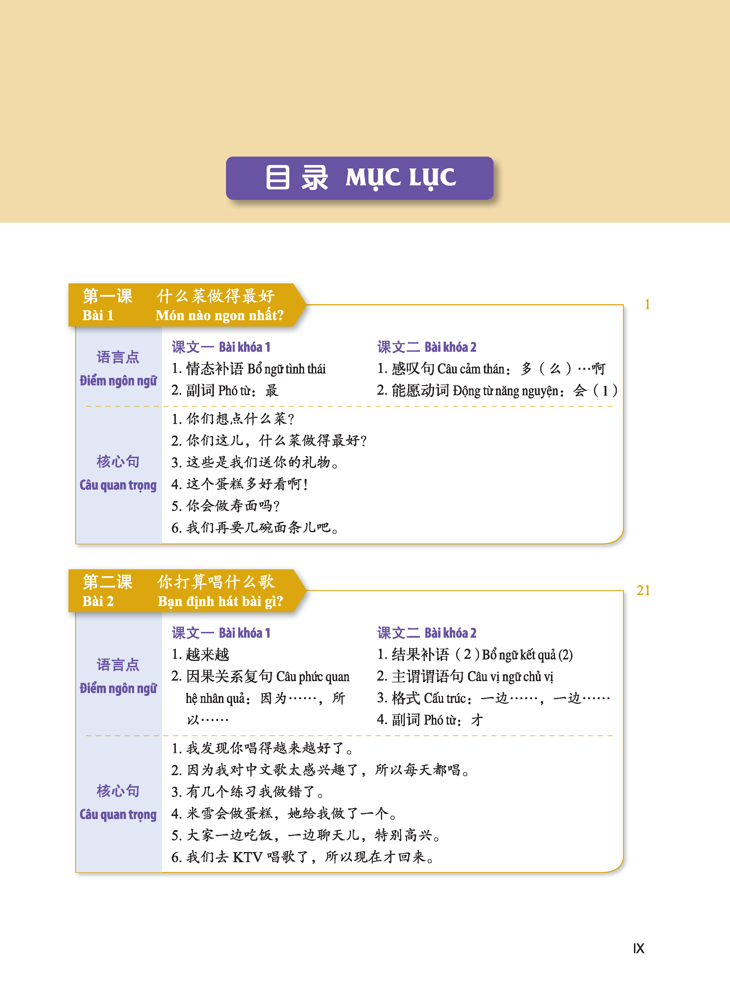 Các bài học trong “Giáo trình Hán ngữ 2 Tập 1 Quyển hạ phiên bản 3″ được Mcbooks thiết kế như sau: 1. Bài đọc, 2. Từ mới, 3. Chú thích, 4. Ngữ âm, Ngữ