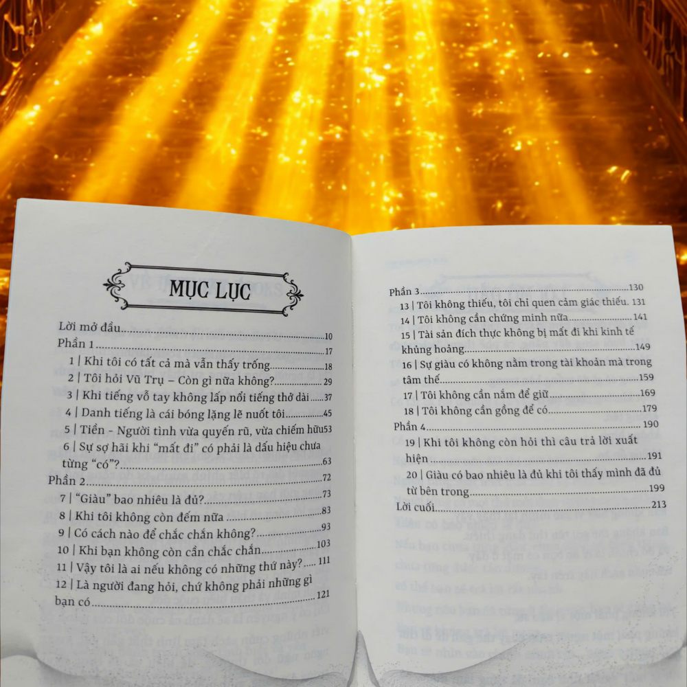 Có người sống giữa đủ đầy, nhưng chưa bao giờ thấy mình thật sự “giàu có”. Giàu Có Bao Nhiêu Là Đủ? không giống bất kỳ cuốn self-help nào dạy làm giàu ngoài kia. 👉 Đây không phải là công thức kiếm tiền, cũng không phải bí kíp quản lý tài chính. Mà là một cuộc trò chuyện sâu sắc và tĩnh lặng giữa “kẻ đã có tất cả” và “vũ trụ”, để bạn tìm lại định nghĩa thật sự của sự giàu có. 📖 Bạn sẽ tìm thấy gì trong cuốn sách này?