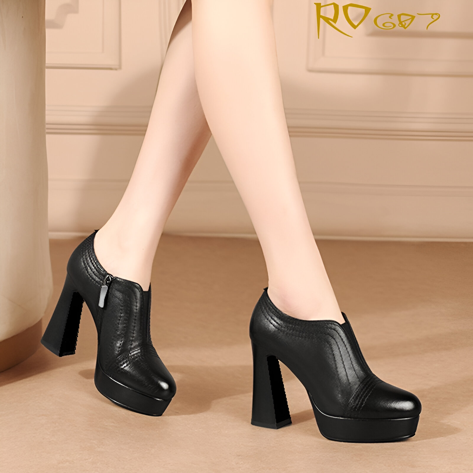 Giày boot bốt nữ cổ thấp 9 phân hàng hiệu rosata màu đen thời trang cao cấp ro607