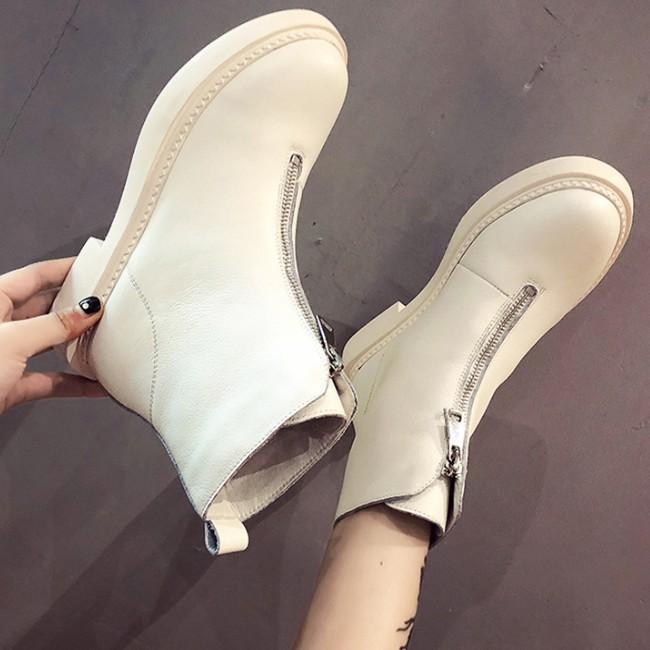 ROSATA - thương hiệu giày thời trang nữ cao cấp THUẦN VIỆT NHƯNG CHẤT LƯỢNG QUỐC TẾ ---- Giày bốt nữ cổ ngắn màu trắng kem 4p RO308 ROSATA tại BCASHOP khóa nút tiện lợi,