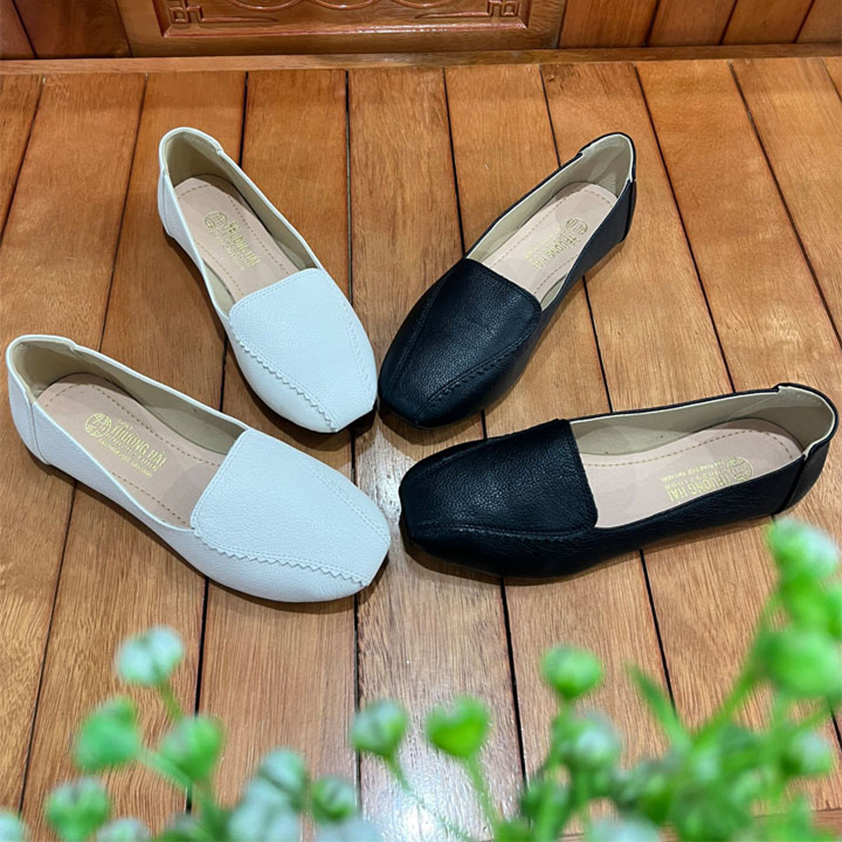 ✨Giày búp bê đế bằng da bò trơn Trường Hải da mềm GBB120 có 2 màu đen, trắng