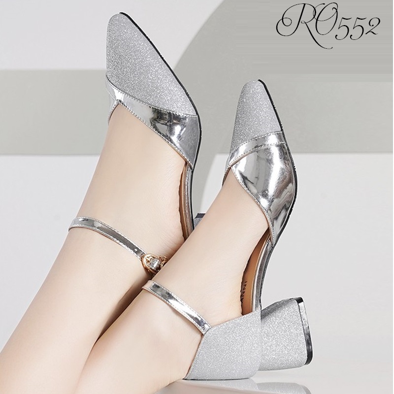 Giày cao gót nữ đẹp đế vuông 4 phân hàng hiệu rosata hai màu đồng bạc thời trang cao cấp ro552
