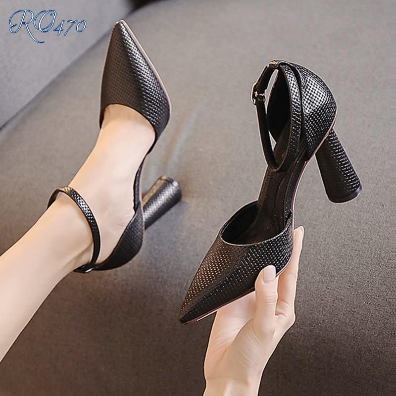 Giày cao gót nữ đẹp đế vuông 9 phân hàng hiệu rosata màu đen da ro377