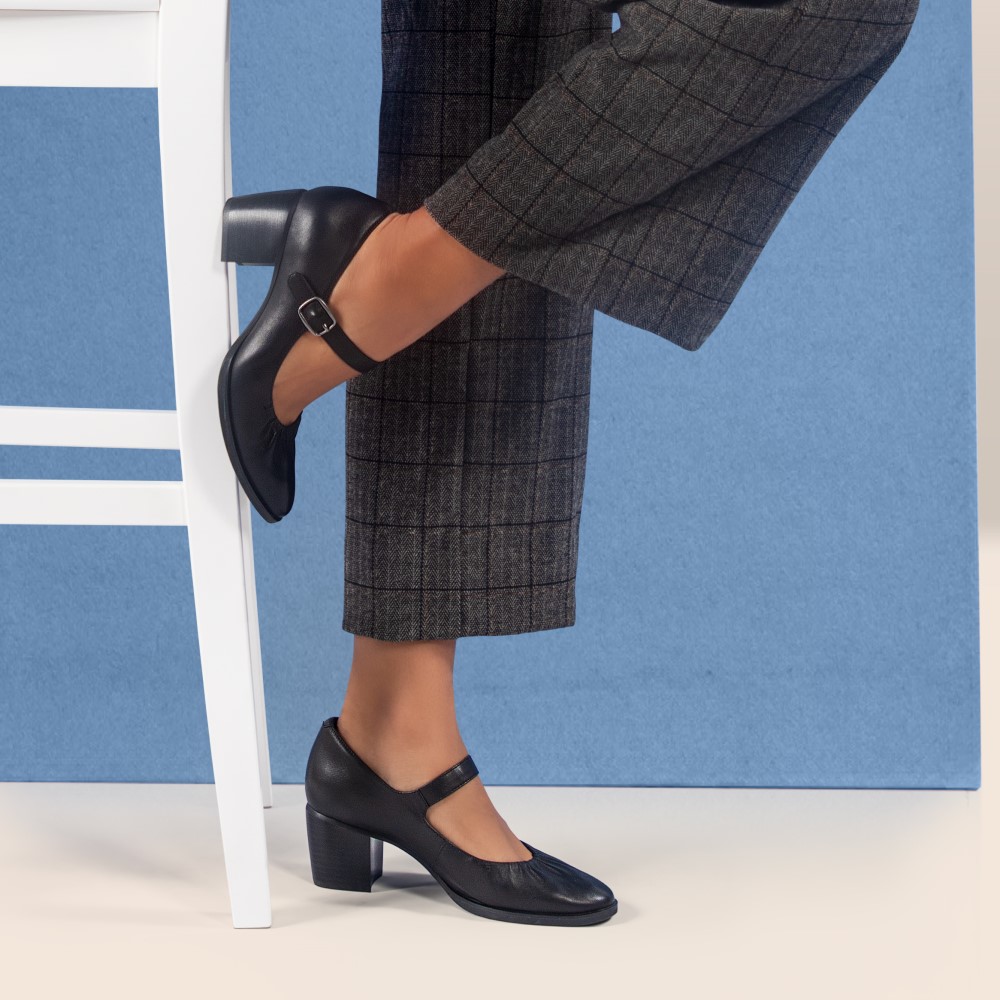 Giày cao gót Aetrex Sara với kiểu dáng giày mary jane hiện đại với gót vuông và thiết kế xếp ly quyến rũ ở phần mũi giày.