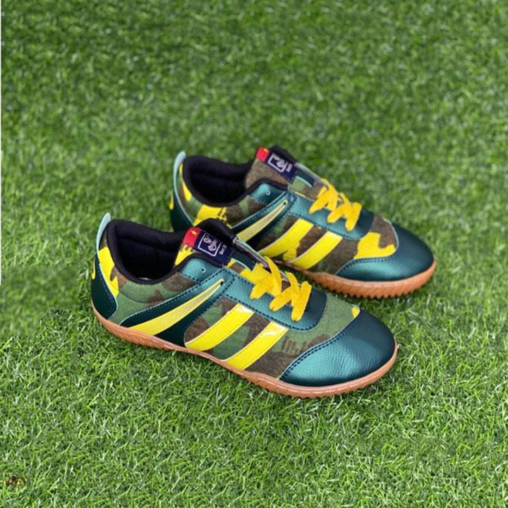Giày đá bóng futsal mới màu xanh quân đôi cho độ bám sàn tốt cũng như có độ bền cùng độ dẻo dai cao, là chọn lựa lý tưởng của những bạn nam yêu thích thể thao. Đặc biệt, thiết kế chủ đạo màu chuối nổi bật bắt mắt cùng logo ấn tượng, làm toát lên phong cách mạnh mẽ của cầu thủ bóng đá.