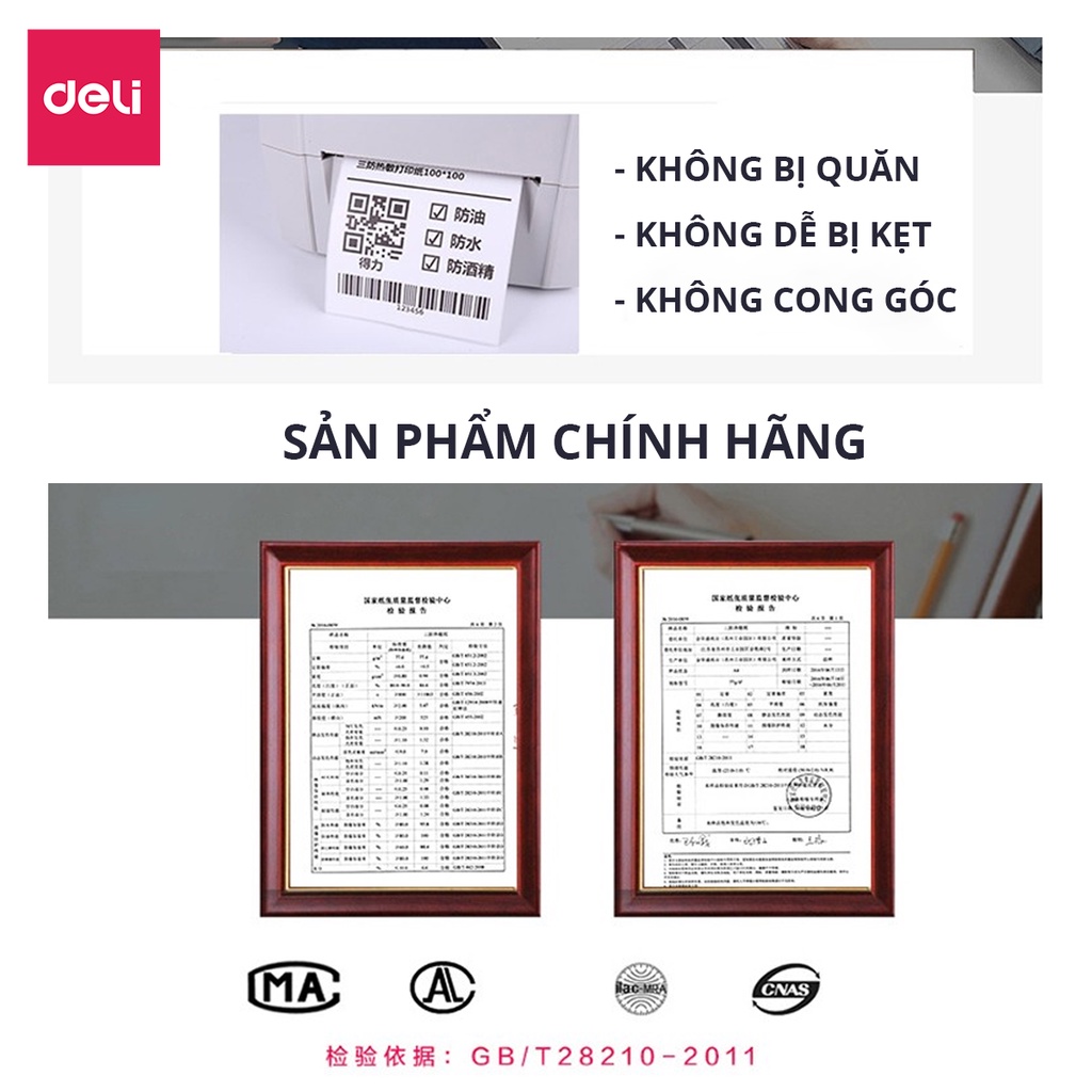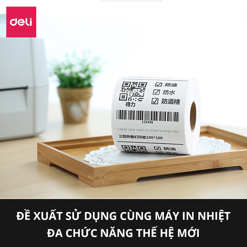 THÔNG TIN SẢN PHẨM:- Tên sản phẩm: Giấy decal in nhiệt Deli- Mã sản phẩm: 12308- Kích thước: 100*150mm 325 tờ TÍNH NĂNG SẢN PHẨM: - Màu: trắng - chữ đen- Dạng cuộn: 325 tờ/ cuộn-