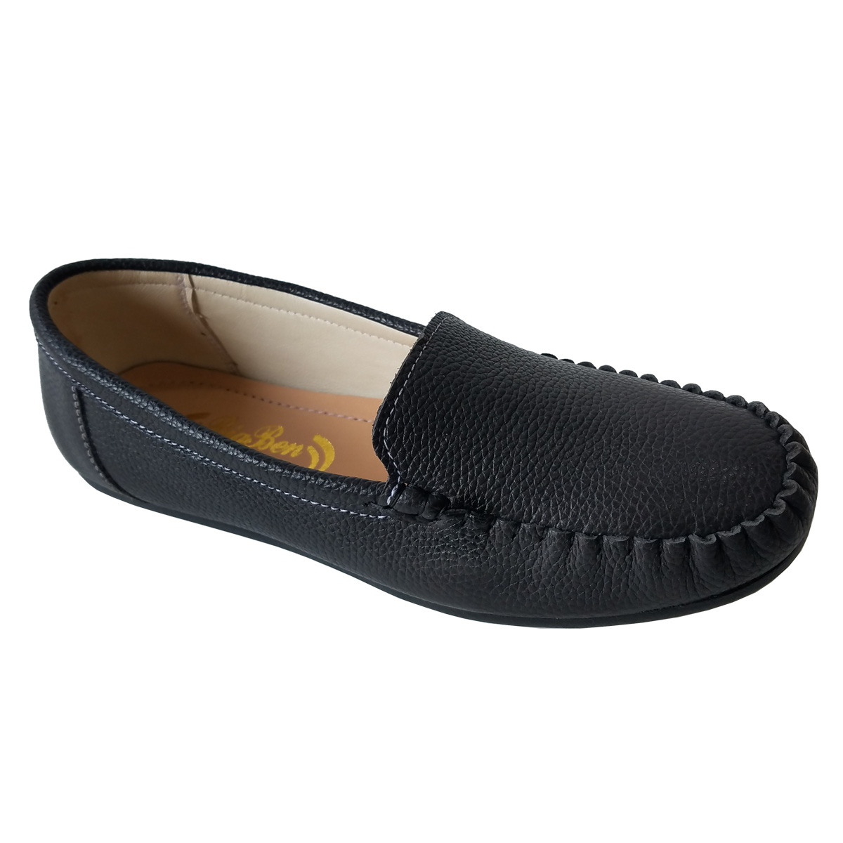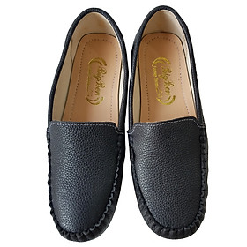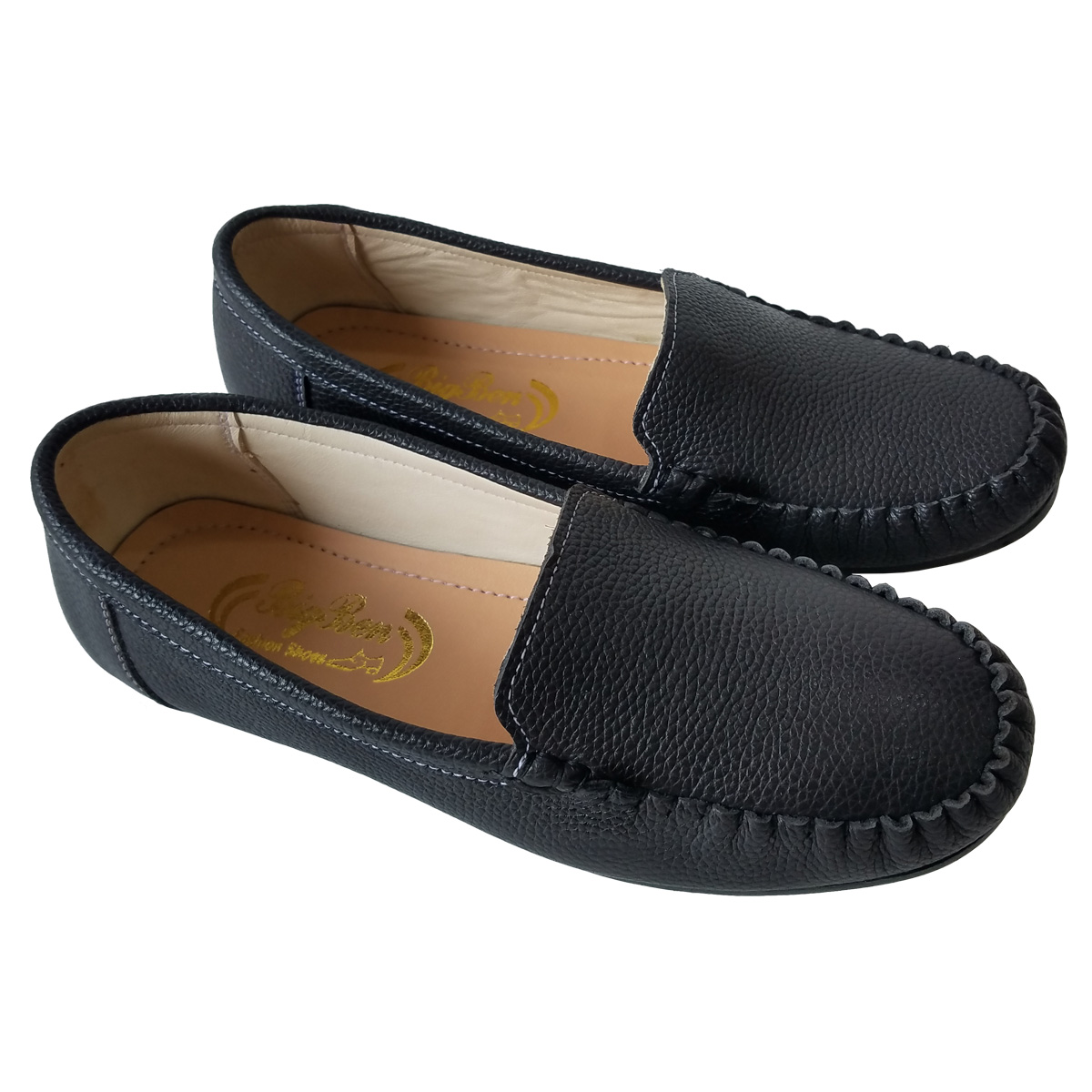 Giày Đế Bằng Giày Lười Nữ Da Bò Thật Siêu Mềm Sang Trọng Evelynv GB0916 (Đen)