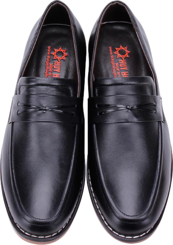 Giày nam Huy Hoàng xỏ chân phối nơ màu đen 7194