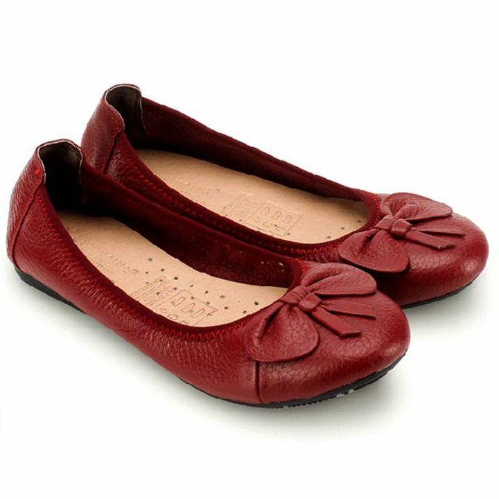Giày nữ búp bê Huy Hoàng da bò màu đỏ đô 7909