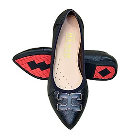 Giày búp bê đế xuồng da thật gót cao 5cm mũi nhọn đế đen thời thượng giúp nàng dễ phối đồ