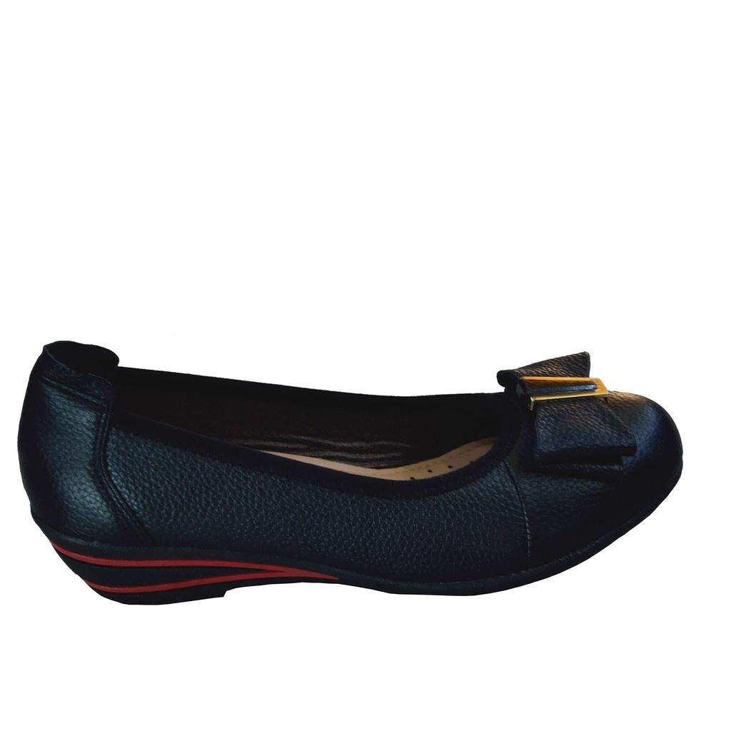 Giày đế xuồng 3cm đính nơ đen Trường Hải da bò thật