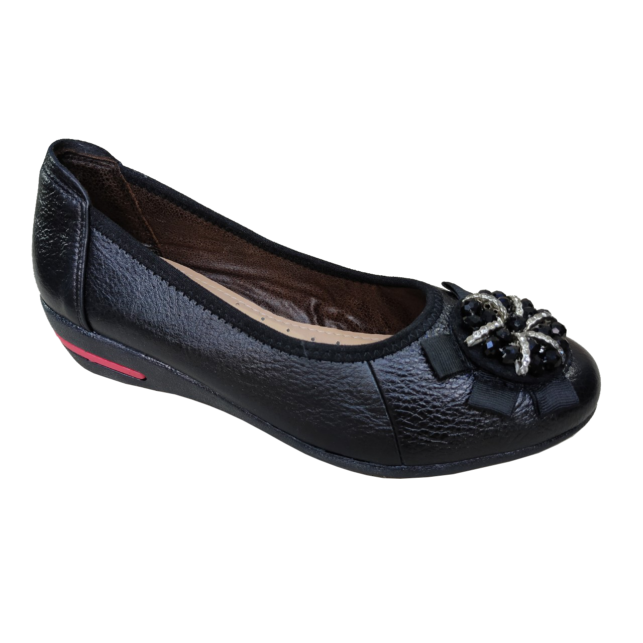 Giày đế xuồng 3cm đính nơ đen Trường Hải da bò thật