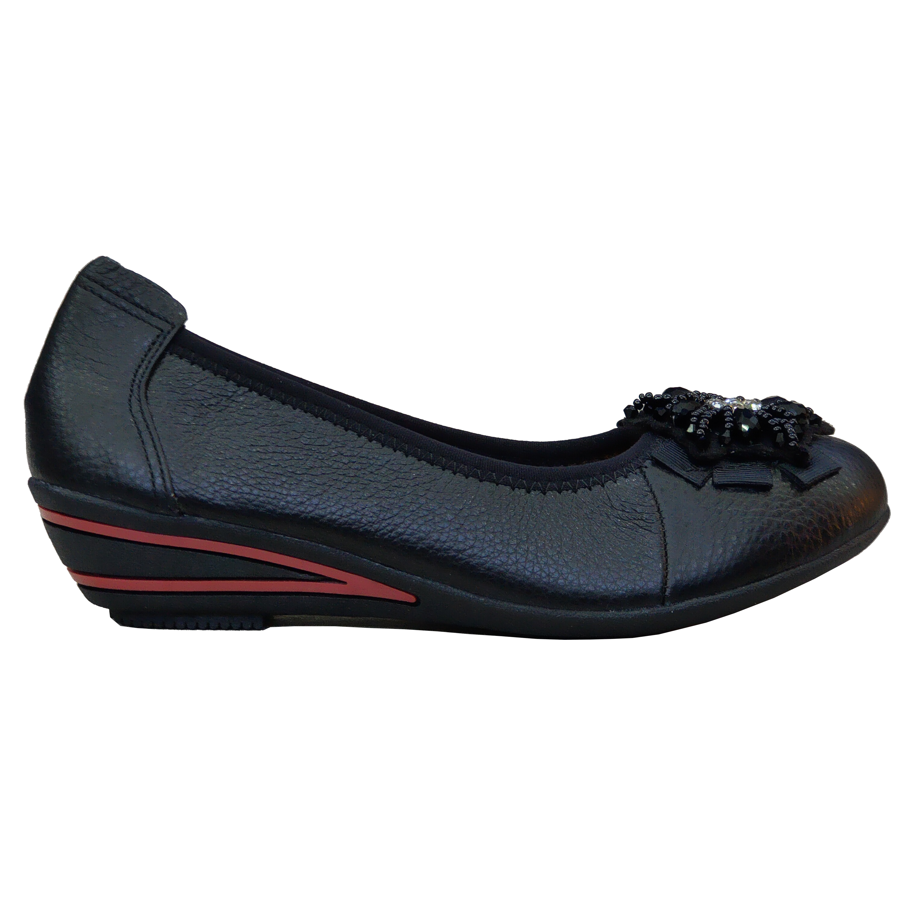 Giày đế xuồng 3cm đính nơ đen Trường Hải da bò thật