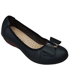 Giày đế xuồng 3cm đính nơ đen Trường Hải da bò thật