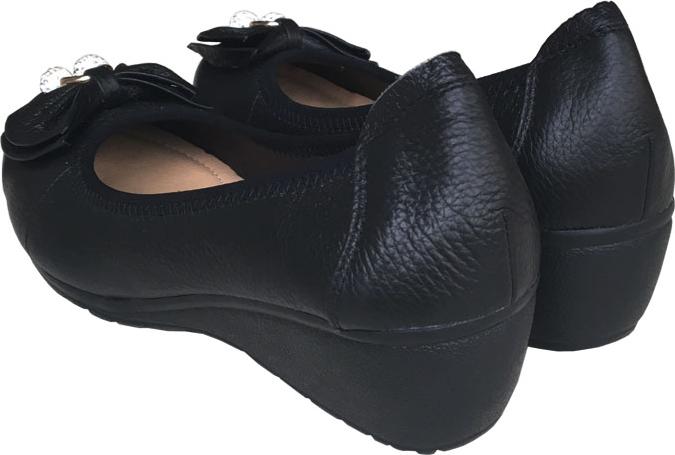 Giày đế xuồng 3cm đính nơ đen Trường Hải da bò thật