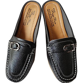 Giày Sabo Nữ Giày Cao Gót Đế Vuông Da Bò Thật Cực Mềm Gót Cao 3cm Evelynv 3P4916 (Đen)