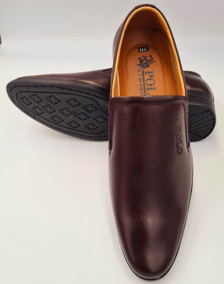 MÔ TẢ SẢN PHẨM: GIÀY TÂY NAM – THANH LỊCH & TINH TẾ - Thiết kế sang trọng – Đơn giản mà đẳng cấp - Kiểu slip-on không dây, tiện lợi khi mang và tháo. - Form giày ôm vừa vặn, mũi tròn nhẹ giúp tôn dáng bàn chân. - Phong cách cổ điển pha hiện đại, phù hợp cho công sở, sự kiện hay gặp gỡ đối tác. - Chất liệu cao cấp – Bền đẹp theo thời gian - Thân giày làm từ da tổng hợp cao cấp, mềm mịn, bóng nhẹ, chống thấm nước nhẹ. - Lót trong êm ái, thoáng khí, tạo cảm giác dễ chịu khi di chuyển nhiều giờ. - Đế giày chắc chắn – Êm chân, bám tốt - Đế cao su chống trượt, độ ma sát cao, đảm bảo bước đi vững vàng. - Có độ đàn hồi tốt, giảm lực tác động khi di chuyển, giúp êm chân cả ngày dài. - Chi tiết tinh tế – Nâng tầm phong thái quý ông - Hai bên thân giày được thiết kế thun co giãn, giúp dễ mang và ôm chân chắc chắn. - Đường may sắc sảo, tạo nên vẻ hoàn thiện chuẩn chỉnh cho từng chi tiết. Phù hợp cho: - Doanh nhân, nhân viên văn phòng, giáo viên, hay người yêu thích phong cách lịch lãm. - Lý tưởng cho các dịp hội họp, phỏng vấn, sự kiện hoặc đi làm hằng ngày.