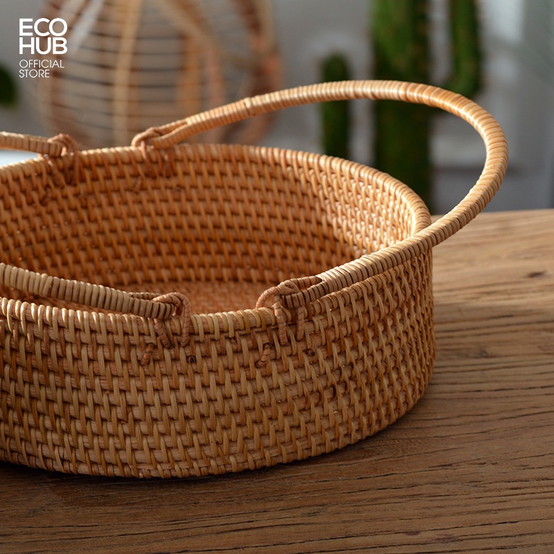 Giỏ mây ECOHUB có tay cầm đựng bánh mì, hoa quả.