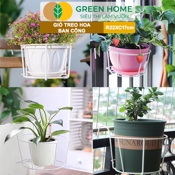 ✨Giỏ treo hoa ban công, D22xC18cm, chất liệu sắt sơn tĩnh điện, phù hợp với mọi lan can |Greenhome