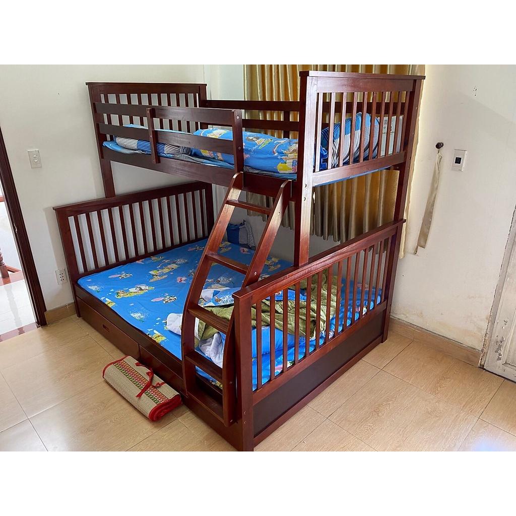 giường gỗ 2 tầng có nhiều ngăn kéo cho bé